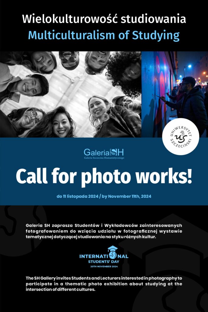Digital works, labeled with the creator’s name(s) and title, should be sent to the curator of the SH Gallery: mikolaj.materne@usz.edu.pl by November 11th, 2024, included. The submitted photos will be printed, so they should have a resolution of at least 2000 pixels (shorter side).