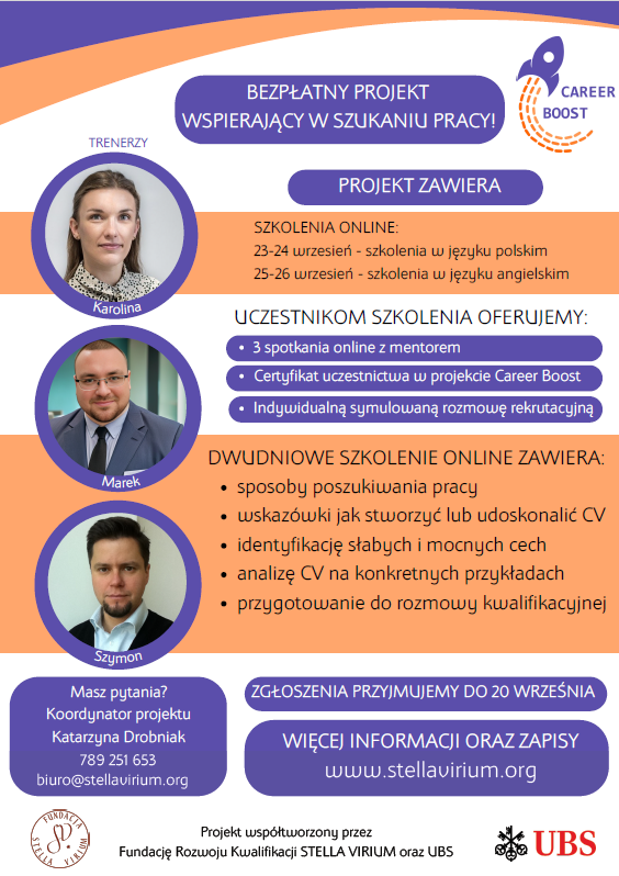 Z radością ogłaszamy drugą edycję projektu "Spread Your Wings", który rozpocznie się wiosną 2024 roku! Projekt ten ma na celu wspieranie rozwoju zawodowego uchodźców z Ukrainy w Polsce poprzez indywidualny mentoring i specjalistyczne szkolenia. Co oferujemy: 1. Indywidualny mentoring: Nasi doświadczeni pracownicy z UBS udzielają wsparcia w formie mentoringu, pomagając uczestnikom osiągać ich zawodowe cele. […]